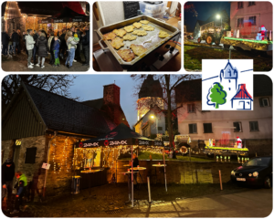 Das letzte Adventstürchen fand beim Heimatverein statt und war ein schöner Abschluss der Adventszeit. Im historischen Backhaus wurden frische Reibekuchen gebacken und mit selbstgemachtem Apfelmus oder Quark angeboten – so lecker, dass sie nach einer Stunde schon aus waren.