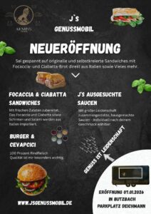 Am 7. Januar 2026 eröffnet J’S Genussmobil seinen Foodtruck in Butzbach. Hinter dem Konzept steht ein Gründer mit 15 Jahren Erfahrung als Sozialarbeiter, der sich nun seinen Traum von der eigenen gastronomischen Unternehmung erfüllt.